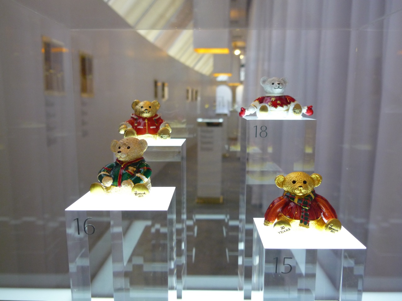 ... Don't miss the exhibition of Estée Lauder fragrance and powder compacts, showcasing many of the most collectible limited editions they've issued over the years. It's the kick-off for the celebrations marking 50 years of Lauder at Harrods (London was the first city outside the States 'colonised' by Mrs. Lauder, and Harrods was the debut stockist here...) The fourth floor gallery (you can double up with a visit to The Perfume Diaries) features these miniature versions of the Harrods' teddy - and Beauty Bible is reliably informed that the folks at Lauder are let in on each year's top secret design even before staff at the shop, so they can get the matching teddy compact designed! (PS There's an iPod commentary, as you walk around...)
